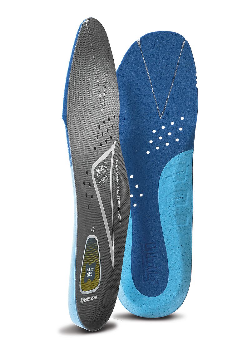 Tekniskt avancerad, stötdämpande inläggssula med sensationell sviktkänsla. Bygger på en blandning av PU-skum och gummimaterial som ger 40 procent bättre återfjädring. Ventilerad för skön komfort. Utvecklad av Ortholite®. X-40 finns i flera av världens ledande sportskotillverkares toppmodeller.