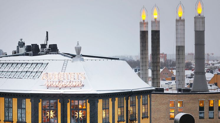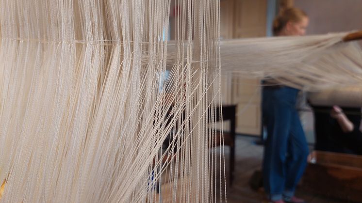 Solvning på K. A. Almgren sidenväveri & museum. En av museets lärlingar i bakgrunden.