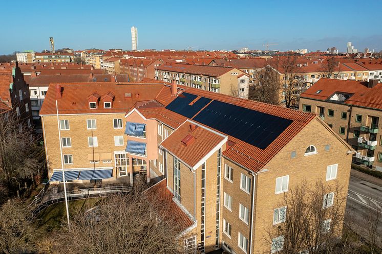 Solceller på taket i en av Hemsös fastigheter i Malmö. Produktion av Climat80´s energiavdelning.