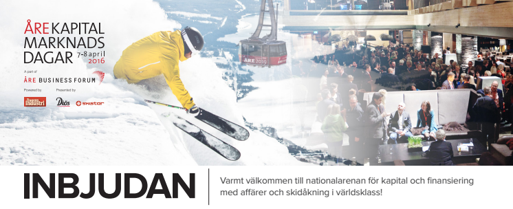 Åre Kapitalmarknadsdagar är nationalarenan för kapital och finansiering som präglas av många spännande möten i en fantastisk miljö på det världsberömda designhotellet Copperhill Mountain Lodge. Det är Nordens motsvarighet till World Economic Forum i Davos, med fokus på affärer, investeringar och nya kontakter.
