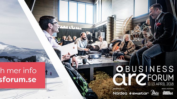 För 9:e gången arrangeras Åre Business Forum 11-13 april 2018 i Åres unika vårvintermiljö. Sveriges främsta affärs- och investeringsforum präglas av många spännande möten i en fantastisk miljö på det prisbelönta designhotellet Copperhill Mountain Lodge i Åre. Det är Nordens Davos, med fokus på affärer, investeringar och nya kontakter. Här möts de mest intressanta bolagen och politikerna finns på plats. I Åre får ni också tillfälle att träffa ägare och koncernledningar, viktiga aktörer och intressenter, samt några av de bästa tillväxtbolagen i Norden.