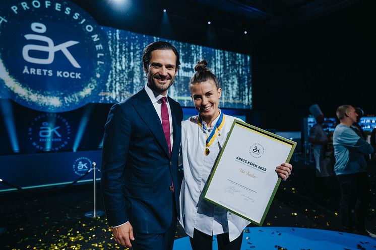 Vinnare av Årets Kock Ida Bauhn 2025 med H.K.H. Prins Carl Philip - beskyddare av Årets Kock -2 - foto Samuel Unéus.jpg