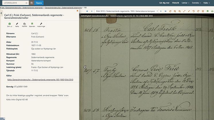 • Generalmönsterrullorna från Södermanlands regemente nu sökbara