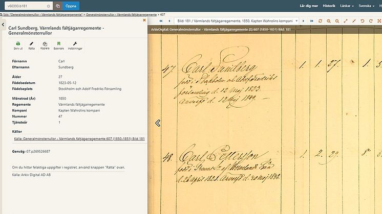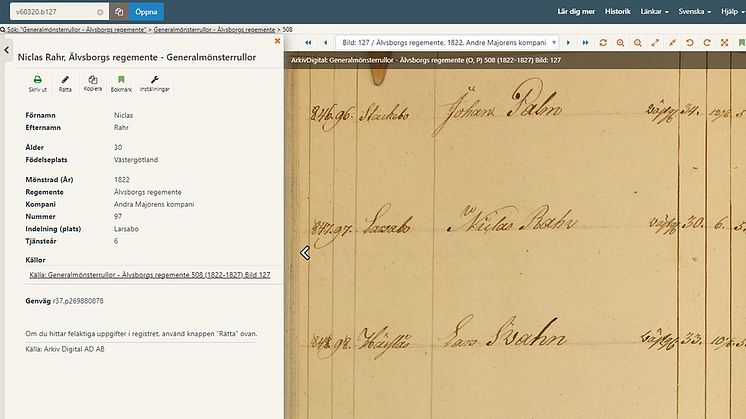 Vi fortsätter att indexera generalmönsterrullorna för att göra det enklare för dig att hitta dina förfäder och släktingar som var soldater. I den senaste uppdateringen har vi lagt till 144 216 sökbara poster från tre olika regementen, nämligen Närkes regemente, Närke-Värmlands regemente och Värmlands regemente.