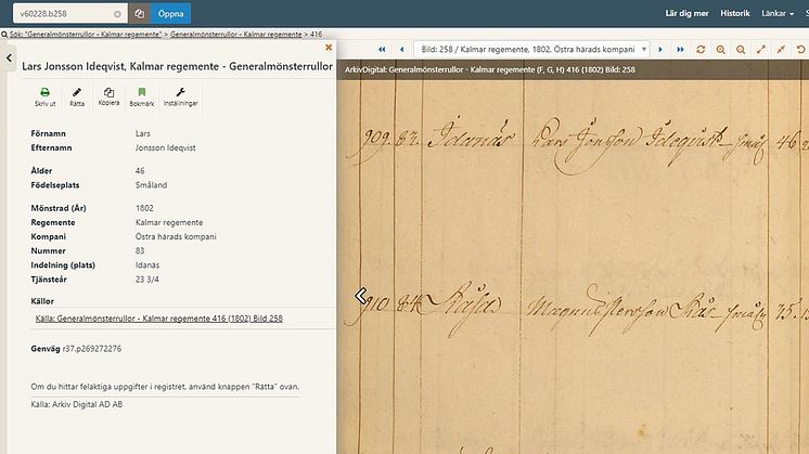 När man släktforskar och hittar en förfader som varit soldat blir man oftast nyfiken och vill veta mer. Då är generalmönsterrullorna en bra källa till ytterligare information. Tidigare har det varit svårt och tidskrävande att hitta rätt i de här rullorna men tack vare ArkivDigitals nya register har det nu blivit mycket enklare.