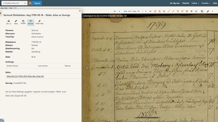 ArkivDigital vill göra det enklare att släktforska och därför arbetar vi med att ta fram register som hjälper dig att snabbt hitta den uppgift du söker. Just nu håller vi bland annat på att indexera uppgifter om personer som avled 1750–1799. I dag har vi lagt till 74 867 sökbara poster om döda personer från Göteborg och Bohuslän.