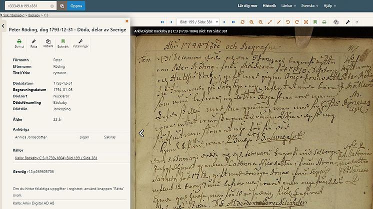 • Sök uppgifter om döda i Gävleborg 1750–1799
