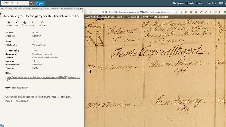 Har du hittat en förfader som varit soldat? Vill du veta mer om honom? Då kan vi tipsa om att söka i generalmönsterrullorna som är en bra källa till ytterligare information om soldater. Tack vare ArkivDigitals nya register har det nu också blivit mycket enklare att hitta till rätt person i de här rullorna. Registret uppdateras efter hand som nya regementen indexeras och idag har vi lagt till 111 2