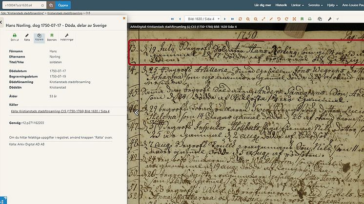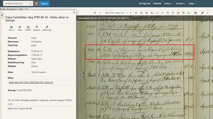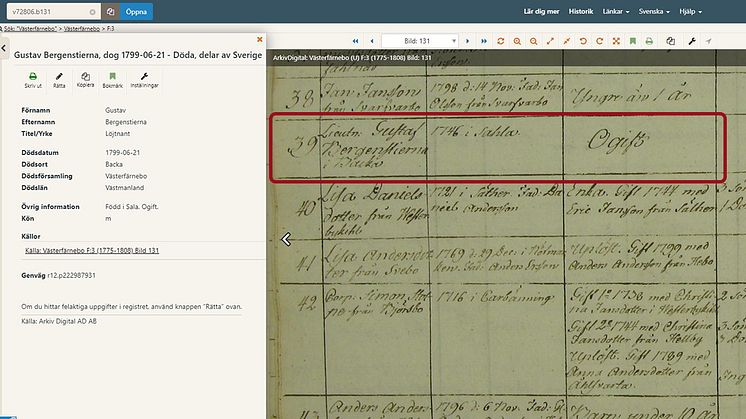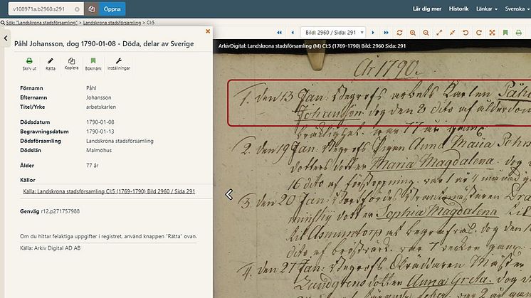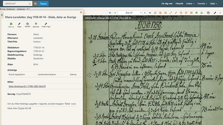 ArkivDigital arbetar vidare med att indexera uppgifter om personer som avlidit under åren 1750–1799. I dag har vi uppdaterat vårt dödregister med nya uppgifter från Västmanlands län. Totalt innehåller uppdateringen 78 326 sökbara uppgifter om personer som avled 1750–1799.