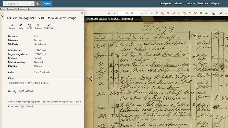 • Sökbara uppgifter om personer som dog i Uppsala 1750–1799