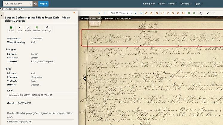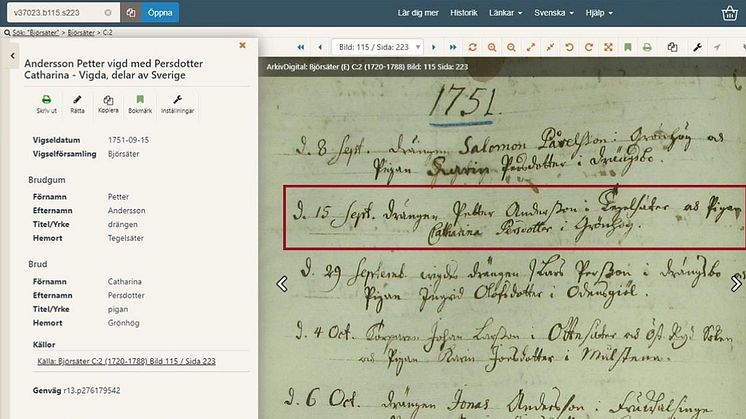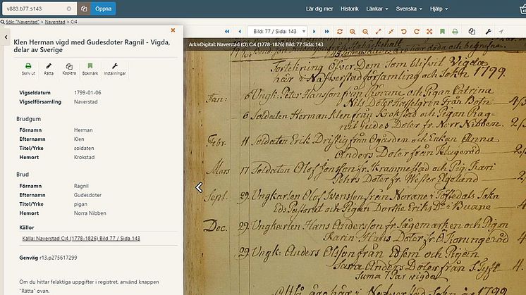 Nu har ArkivDigitals vigselregister uppdaterats med 46 312 nya sökbara poster från Skaraborgs län. Uppgifterna gäller personer som vigdes mellan åren 1750 och 1799.