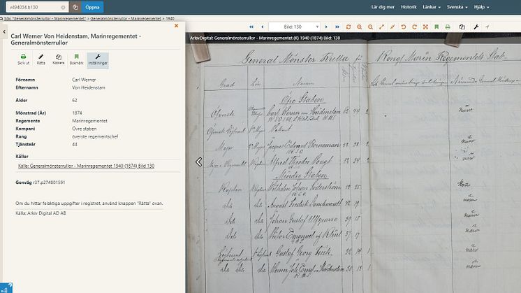 I dag har ArkivDigital uppdaterat registret till generalmönsterrullorna med sökbara uppgifter från nio finska regementen. Efter den här uppdateringen är vi helt klara med registret till generalmönsterrullorna för 1660–1887! Totalt innehåller registret 4 368 283 sökbara poster som underlättar för alla som snabbt vill kunna hitta uppgifter om militärerna i sin släkt.