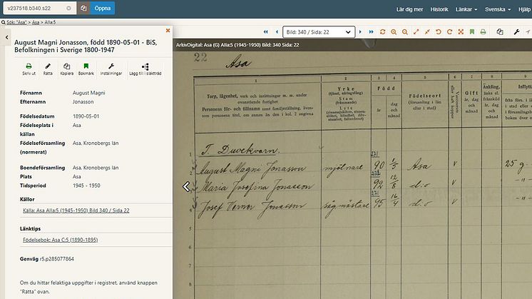 ArkivDigital arbetar vidare med att fylla på registret Befolkningen i Sverige med fler sökbara uppgifter. Den här veckan har vi lagt till 181 431 nya sökbara poster från Kronobergs län samt lite spridda uppgifter från olika län och församlingar. Eftersom du kan söka på namn i registret så går det nu snabbare och blir enklare att hitta dina förfäder och släktingar.