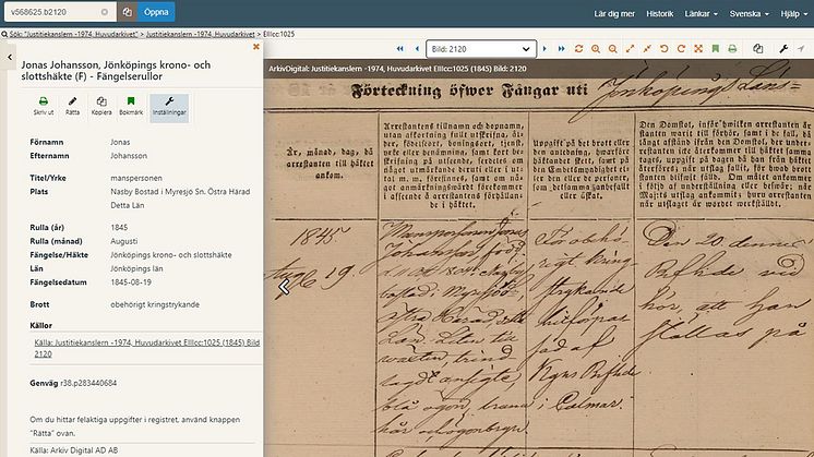 ArkivDigital lanserar nu ett personregister till fängelserullorna för att göra det enklare för dig som släktforskar att hitta uppgifter om dina förfäder och släktingar som satt i fängelse.