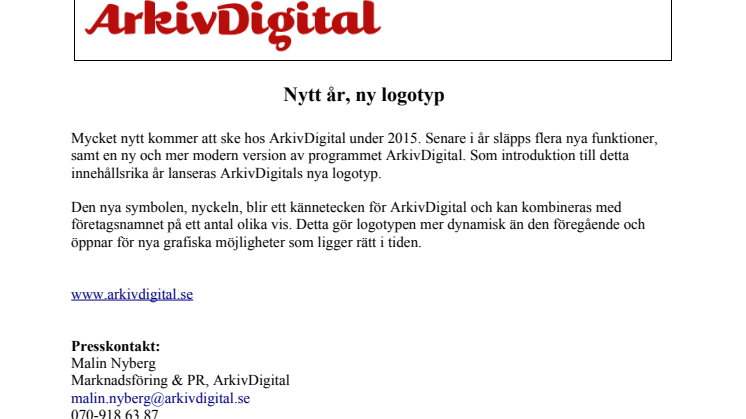 Mycket nytt kommer att ske hos ArkivDigital under 2015. Senare i år släpps flera nya funktioner, samt en ny och mer modern version av programmet ArkivDigital. Som introduktion till detta innehållsrika år lanseras ArkivDigitals nya logotyp.