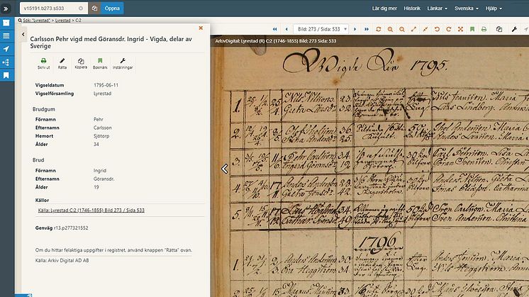 Totalt innehåller registret Vigda, delar av Sverige nu 2,5 miljoner poster. Vi kommer fortsätta att uppdatera registret framöver så håll utkik på vår blogg och våra sociala medier för att få information om alla uppdateringar.