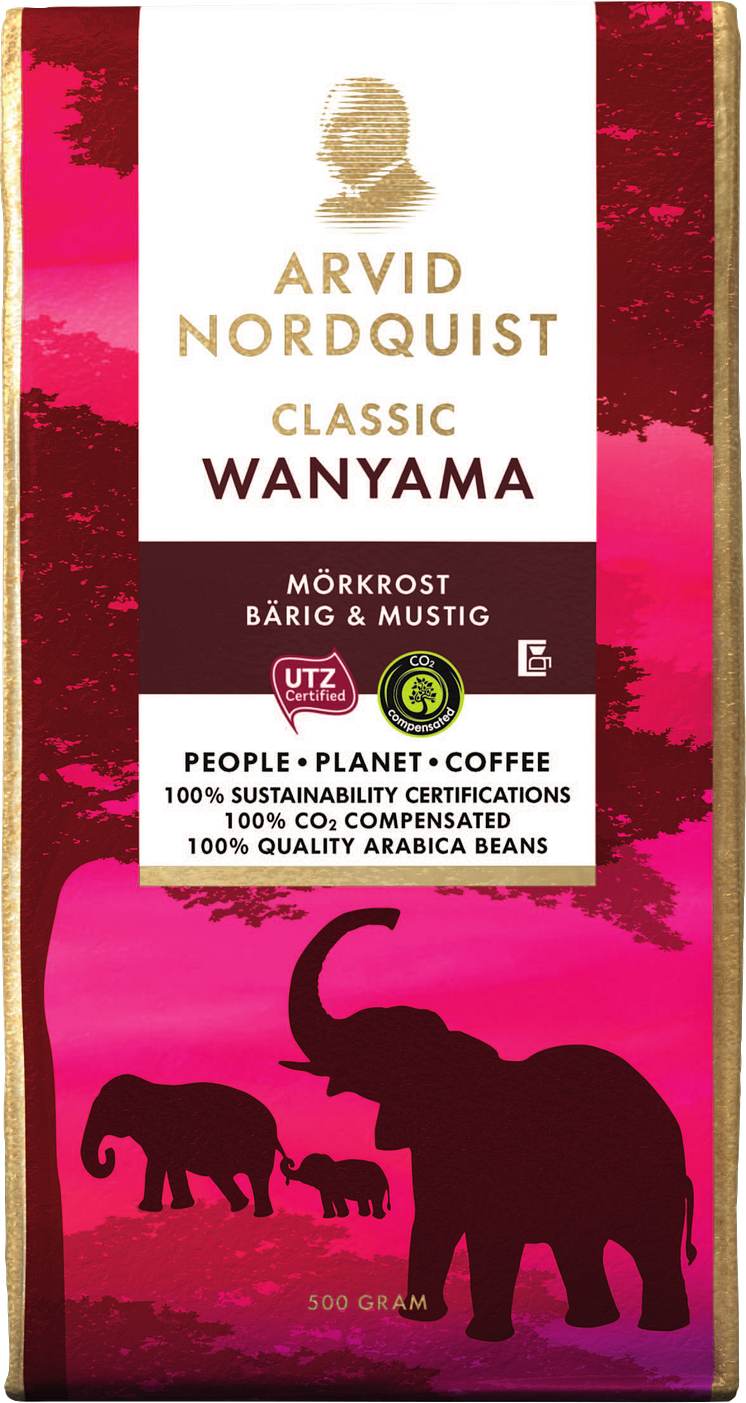 Vår mörkrostade afrikanska blend är en hyllning till vilda djur i allmänhet och den afrikanska elefanten i synnerhet. Med sin bäriga smak och mustiga arom ger kaffet dig en känsla av den otämjda kontinenten, rostat på 100 % arabicabönor främst från Afrika. Wanyama är 100 % hållbart certifierad via UTZ Certified.