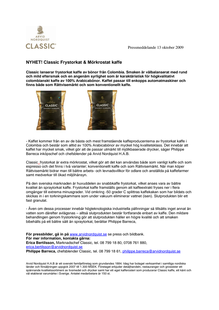 Erica Bertilsson, Marknadschef Classic, tel. 08799 18 80, 0708 761880, erica.bertilsson@arvidnordquist.se