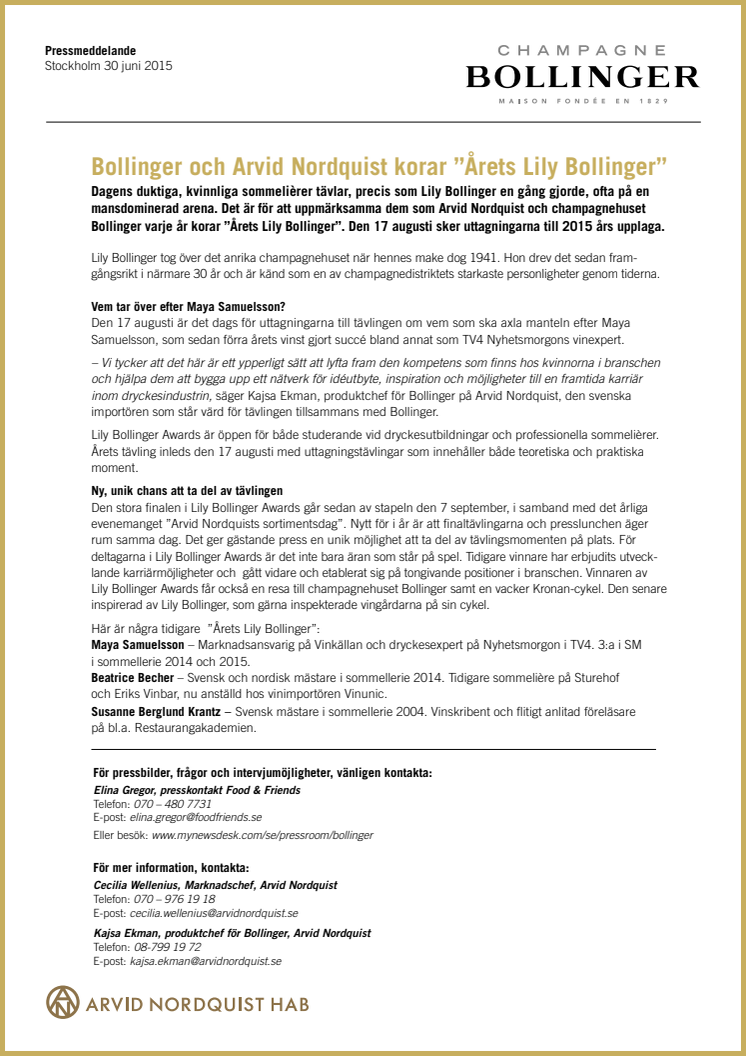 Bollinger och Arvid Nordquist korar ”Årets Lily Bollinger”