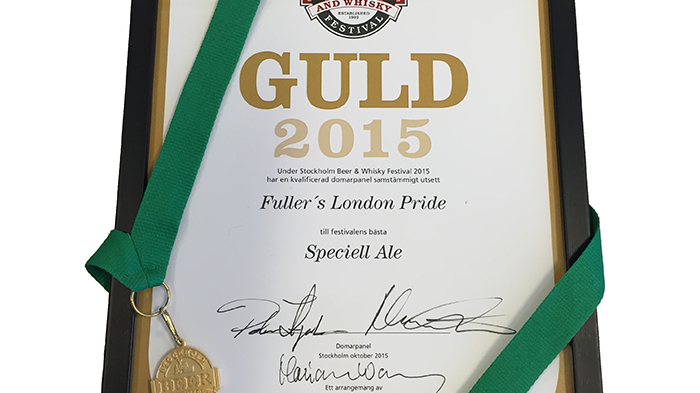 Fuller’s London Pride kammade hem guld i kategorin Speciell Ale under Stockholm Beer & Whisky Festival. Tävlingen, som har fått internationell status, avgörs av både nationella och internationella domare. I år tävlade cirka 1 500 öl om de åtråvärda medaljerna i Bästa Öl.