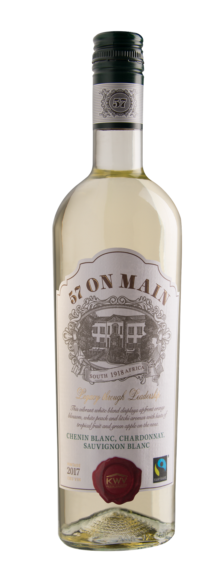 Sju månader efter att 57 on Main såg sitt ljus på den svenska marknaden lanseras nu en vit nyhet med samma namn. Precis som sin föregångare är 57 on Main White certifierat av Fairtrade och på så sätt bidrar även denna flaska till driften av Masekane Dagsorg, en förskola för barnen till vingårdsarbetarna på vingården Rooidraai.