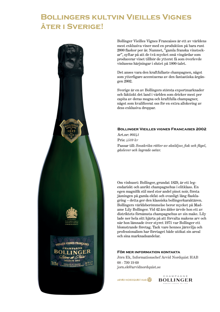 Bollingers kultvin Vieilles Vignes åter i Sverige!