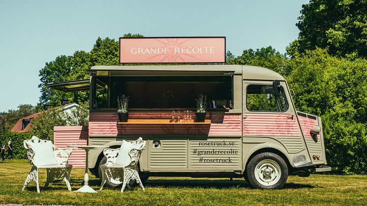 Rosétrucken kommer finnas hos olika restauranger under sommaren och det finns även möjlighet att hyra trucken för privata fester och företagsevent.