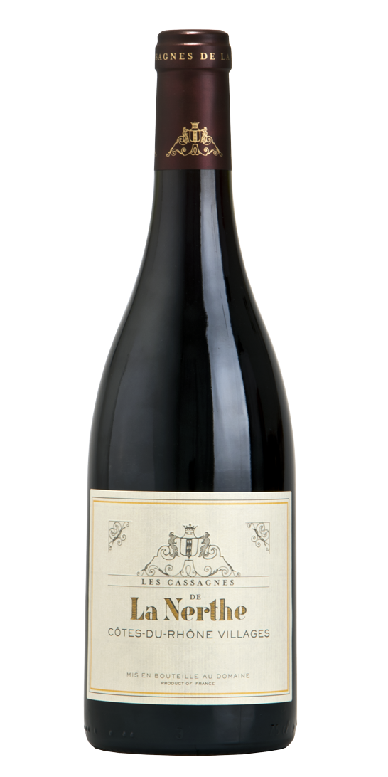 Château La Nerthes Côtes-du-Rhône Villages Les Cassagnes kommer från egna vingårdar belägna 2 mil norr om Châteauneuf-du-Pape. Jordmånen här på Uchauxmassivets sluttningar är annorlunda, framförallt är den mera kalkhaltig och ger en annan mera mineralisk stil åt vinerna.