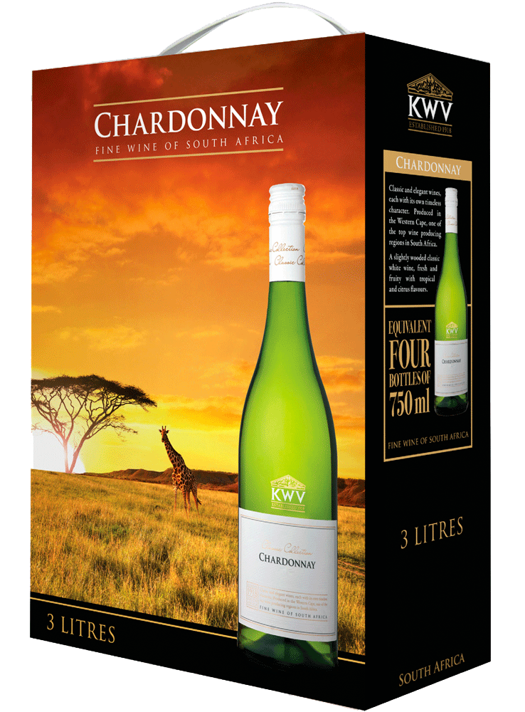 KWV Chardonnay vann guld i kategorin ”Vitt boxvin” samt Best Value i kategorin ”200 kr och uppåt/3 liter”. Vinet har en finstämd doft med frukt och fat i fin kombination. Lätt smörig smak med frisk syra och inslag av citrus, äpple, mandel och tropisk frukt. Vinodlingarna för KWV Chardonnay influeras av närheten till Stilla Havet vilket bidrar till milda somrar och vintrar med god nederbörd. Havets svalkande vindar ger långsam mognad åt druvorna, vilket bidrar till friska viner med välutvecklade aromer. Vinet är jäst och lagrat i 3 månader på franska ekfat.