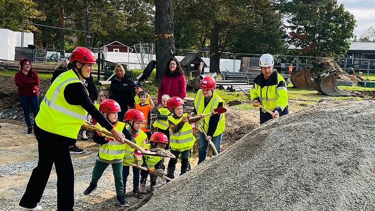 Tidigare i veckan togs ett första spadtag för att markera byggstarten av den nya förskolan i Åsbro. Barn från förskolan Mosippan grävde tillsammans med Caroline Dieker, kommunstyrelsens ordförande, Johanna Martin, ordförande i barn- och utbildningsnämnden och entreprenören Sjötorpshus vd Per Knutsson.