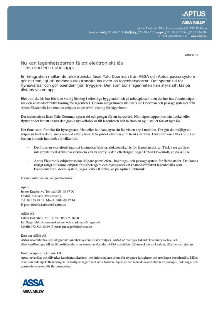 från ASSA och Aptus passersystem gör det möjligt att använda elektroniska lås