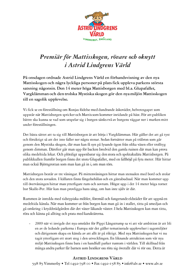 Premiär för Mattisskogen, rövare och oknytt i Astrid Lindgrens Värld