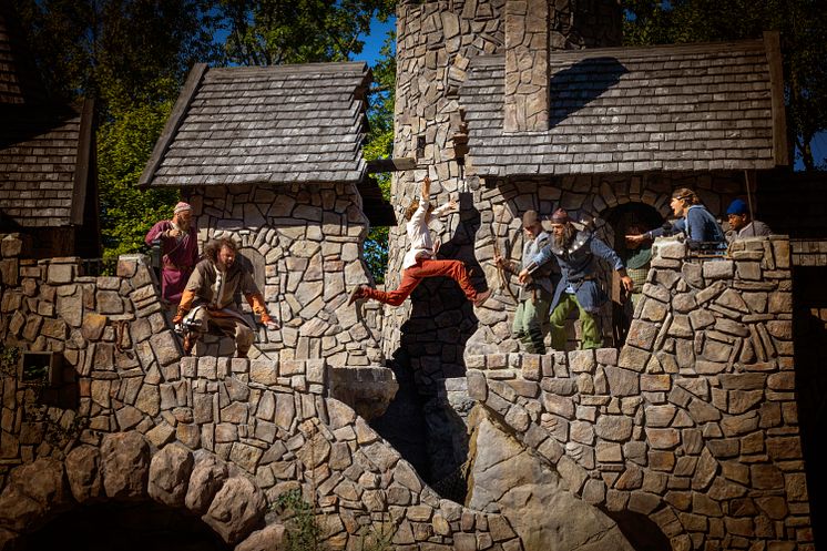 Översiktsbild Mattisborgen med Helvetesgapet. Ronja hoppar från Mattisrövarna till Borkarövarna.
