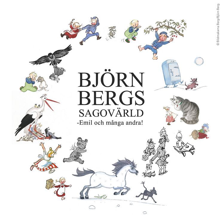 Kärnan i utställningen är en rik samling originalillustrationer och skisser som valts ut av Björn Bergs barn, Maja och Torbjörn Berg. Här visas allt från de första trevande skisserna under uppväxttiden i New York på 30-talet fram till de illustrationer för barnböcker som han skapade under sitt liv fram till 2000-talets början.