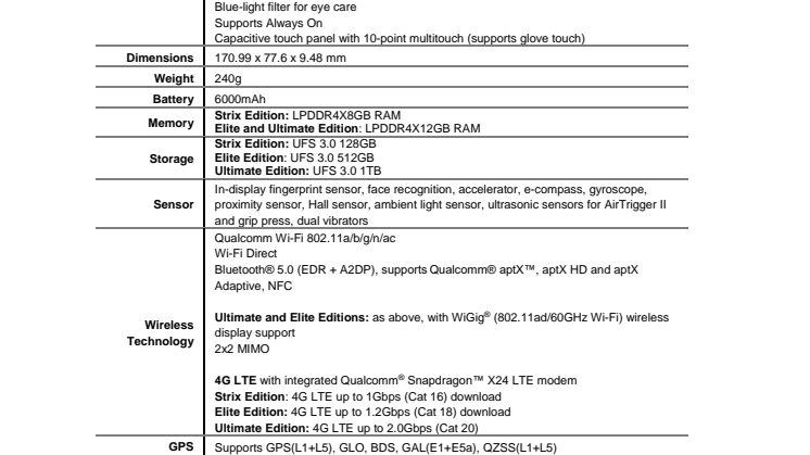 ROG Phone II: Strix Edition (8 GB RAM and 128 GB UFS 3.0 storage in Matte black metal) - 6999 SEK