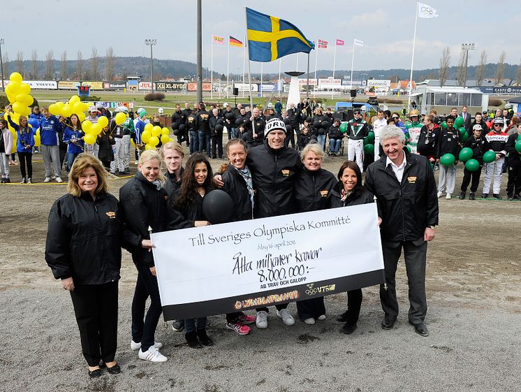 Massor av idrottskändisar gästade idag Olympiatravet på Åby och där tog man emot en check på 8 miljoner kronor.