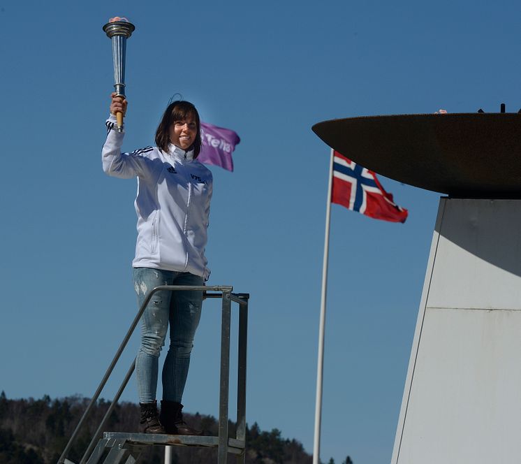 Charlotte Kalla tände den olympiska elden när Olympiatravet idag kördes på Åbytravet.