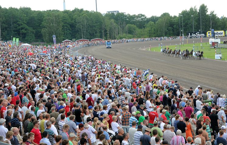 Folkhavet på Halmstadtravet. I fjol kom över 30 000 personer till de tre travdagarna under sprintermästarmeetinget. Foto: Lars Jakobsson / Kanal75