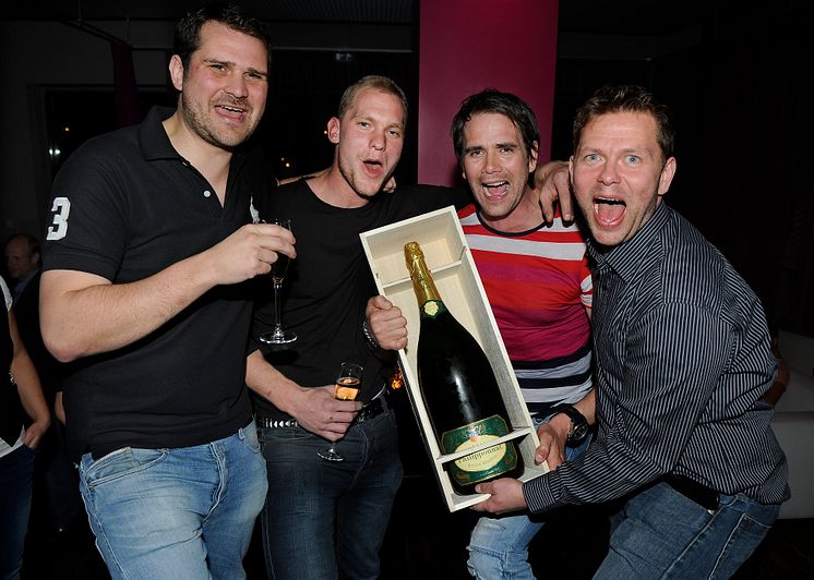 Fyra vann nio miljoner kronor på V75 med hjälp av Harry Boy. De fyra är från vänster: Weine Pettersson, Jonas Andersson, Stefan Berntsson och Christer Nielsen.