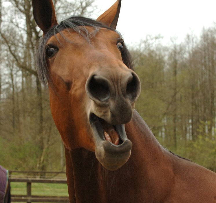 Going Kronos gnäggar hemma i hagen. Foto Lars Jakobsson, Kanal 75.