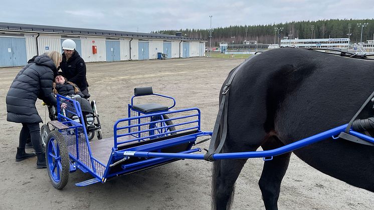 – Det är så roligt att vi får en rullstolsvagn. Nu kan vi växa, med alla! Vi är fantastiskt glada och tacksamma att vi fått den här möjligheten att utveckla vår verksamhet vidare - för alla i samhället, säger Karin Edvinsson, travskolechef på Bollnästravet.