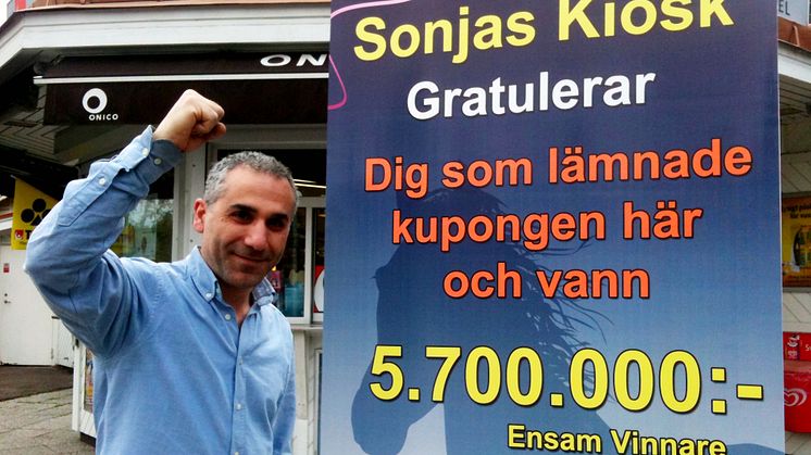 Idag, en vecka senare, var det lika glatt hos Sonjas Kiosk i Saltsjö Boo. Kunden som vann följde V64-loppen i butiken och kunde åka hem 5,7 miljoner kronor rikare.