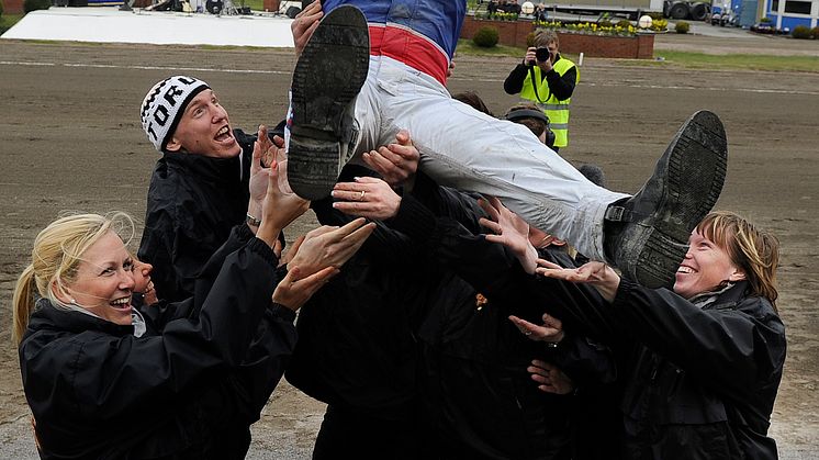 Björn Goop tog under måndagen sina tre första segrar i maj vilket ger 15 000 kronor till Mustaschkampen. Imorgon tisdag fortsätter kampen på Axevalla.