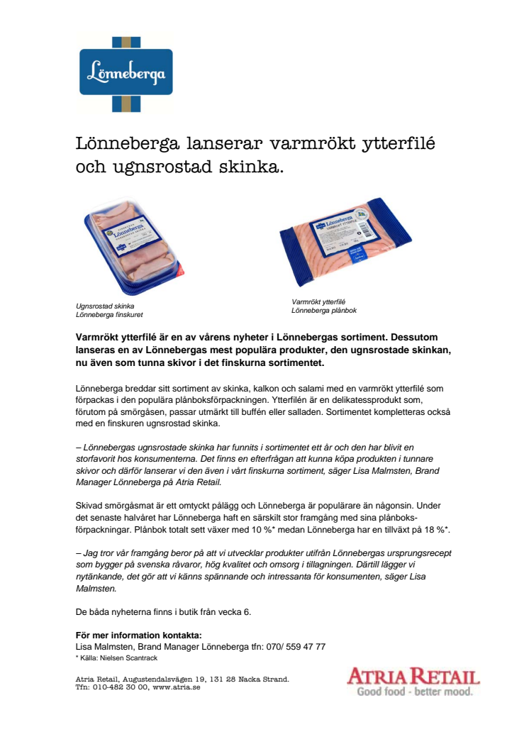 Pressmeddelande: Två nyheter i Lönnebergas sortiment, ugnsrostad skinka och varmrökt ytterfilé
