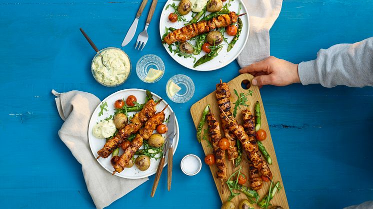 Fredagskocken Mattias Larsson har komponerat tre riktigt smakrika och lättlagade grillrecept med Lönnebergas två nyheter samt storsäljande spettet Paprika & Örter. Vad sägs om Kycklingspett BBQ med grillad sallad & beamayo, Caesarspett eller Libanesisk kycklingfest.