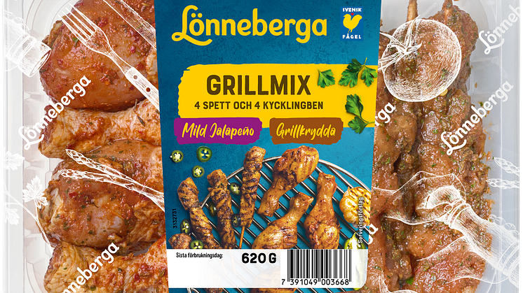 Lönneberga lanserar två kycklingnyheter till sitt populära färdigkryddade grillsortiment. Färdiga spett har blivit lite av ett signum för Lönneberga, nu lanseras Kycklingspett Barbeque. För de som söker variation lanseras Grillmix med 4 minispett Mild Jalapeño och 4 kycklingben Grillkrydda.