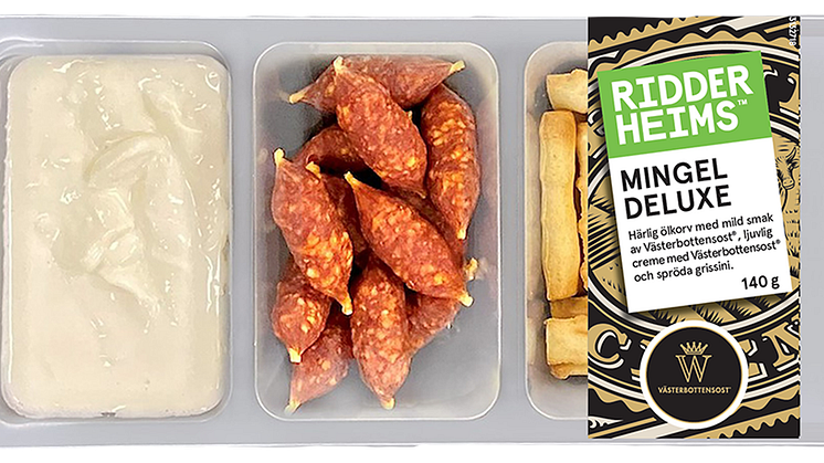 Plockbrickorna som introducerades i höstas har gjort succé och nu lanseras en femte - Mingel Deluxe, Ridderheims lyxigaste hittills. Här bjuds på mild ölkorv smaksatt Västerbottensost, ljuvligt god ostcreme med Västerbottensost och spröda grissini. 44,90 kr/140 g.