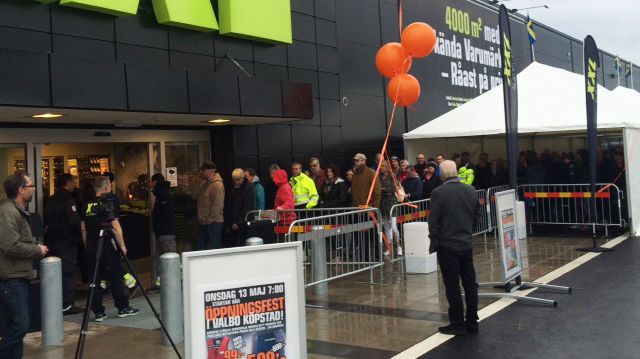 Öppningsfestligheterna fortsätter och invigningen av XXL i Gävle var inget undantag. Trots regnet var stämningen på topp när portarna öppnades till den nya XXL-butiken i Valbo Köpstad. Tältet med övernattade gäster var fullt redan kl 22.30 kvällen innan och de tappra nattgästerna belönades med ett 30 minuters försprång in i butiken före övriga gäster. Med tanke på att kön redan kl 07 var 400 meter, så var övernattningen ett vinnande drag.