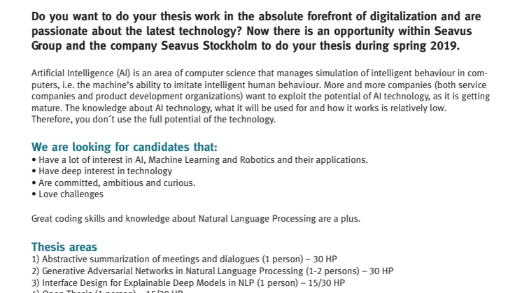 Seavus är på plats under mässan för att prata med studenter om de examensjobb vi erbjuder inom Artificiell intelligens under 2019.