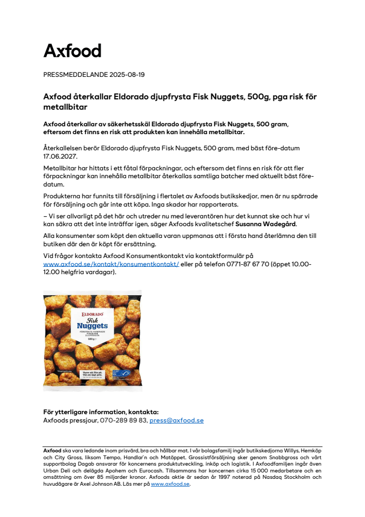 Axfood återkallar Eldorado djupfrysta Fisk Nuggets, 500g, pga risk för.pdf
